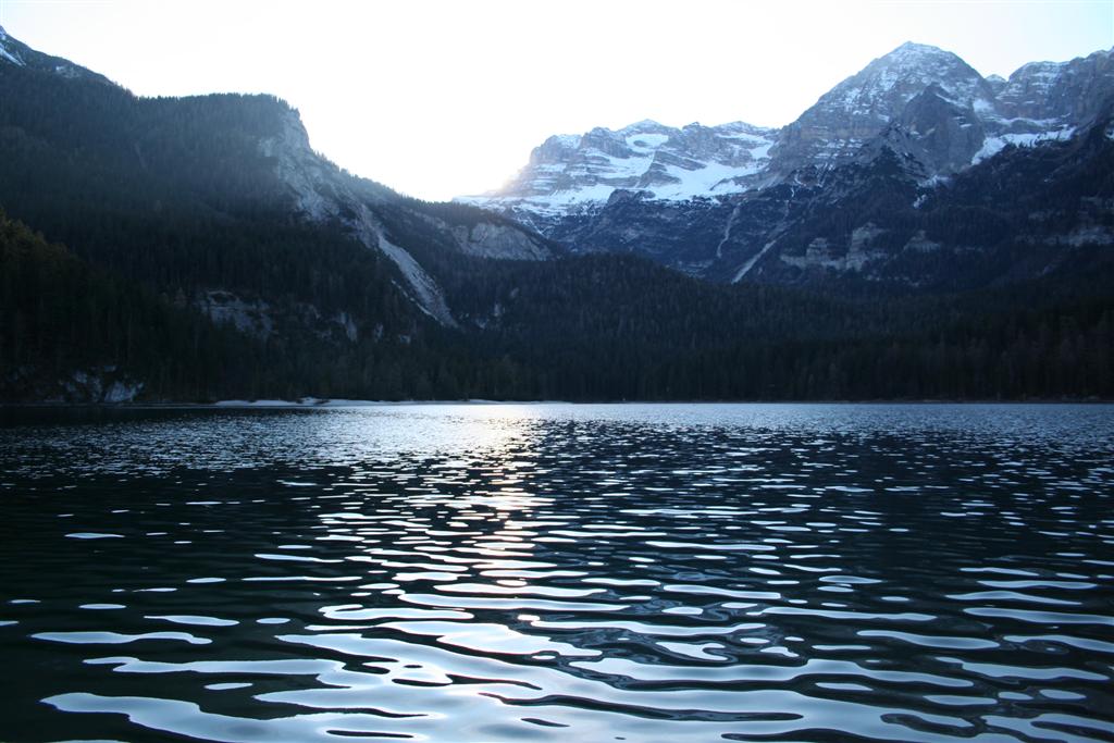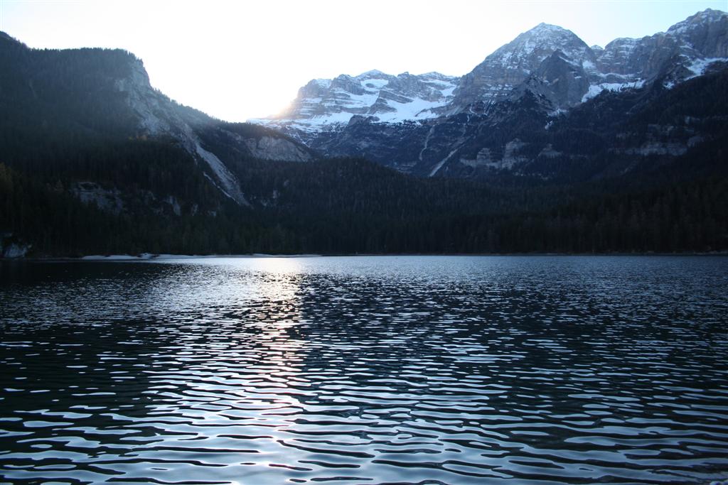 I LAGHI DELLE DOLOMITI: il lago di Tovel, m.1186. Gruppo di Brenta, Trentino "Presso questo lago solitario avrebbe potuto sedere il vecchio Saturno...L'acqua è di un azzurro scuro come le notti egiziane" (Douglas William Freshfield, 1875) Probabilmente il più conosciuto dei laghi alpini per la colorazione rossa delle sue acque dovuta ad una particolare alga. Anche se questo fenomeno cromatico da circa 25 anni è scomparso, il Lago di Tovel ha conservato per intero il suo grande fascino, per l'unicità degli scenari che lo circondano. La sua origine è dovuta a sbarramento su di un preesistente lago di circo. Attorniato da una vasta foresta di abeti e dalle cime del Gruppo della Campa e delle Cresta settentrionale del Brenta, il Lago ha una estensione ragguardevole per la sua quota: mq 382500. E' situato in una profonda valle, omonima, che penetra il Gruppo di Brenta da est a ovest, da Tuenno sino a Campo Flavona dividendo la Cresta settentrionale dal Sottogruppo della Campa. E' raggiungibile per strada di 12 Km da Tuenno (chiusa a circa 15 minuti di cammino dal Lago in prossimità di una serie di parcheggi dai quali parte in stagione un servizio di navette). Numerosi itinerari da e per il Lago collegano questo raro gioiello con gli altri rifugi e località delle Dolomiti di Brenta. I visitatori hanno la possibilità di percorrere tutto il perimetro del bacino lacustre lungo una stradina nella pineta e un sentiero con qualche saliscendi nella parte meridionale. Il Lago è leggermente carsico e nella stagione invernale quando le precipitazioni piovose sono scarse, talvolta l'acqua si abbassa lasciando sospesa la spessa lastra di ghiaccio che la ricopriva